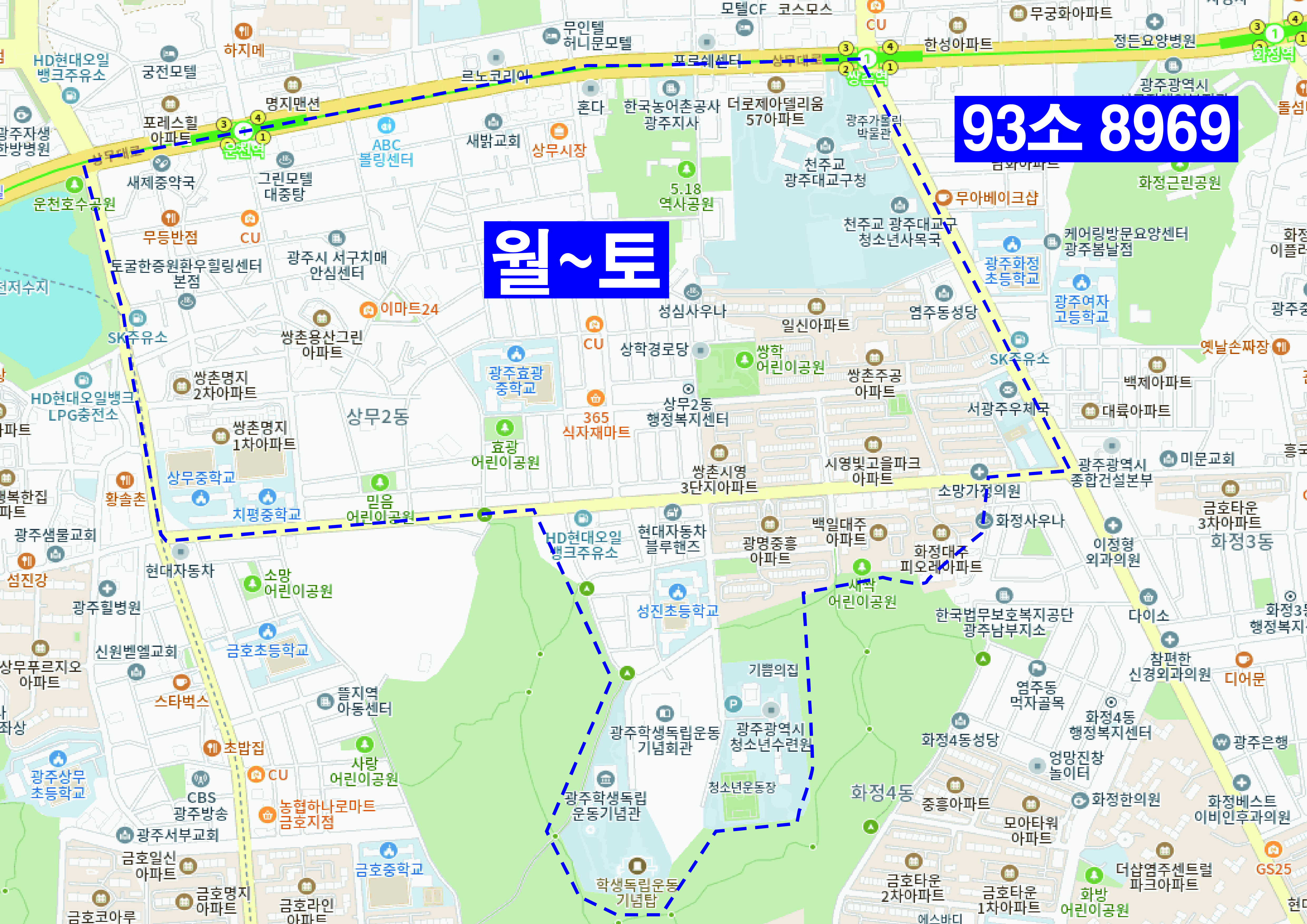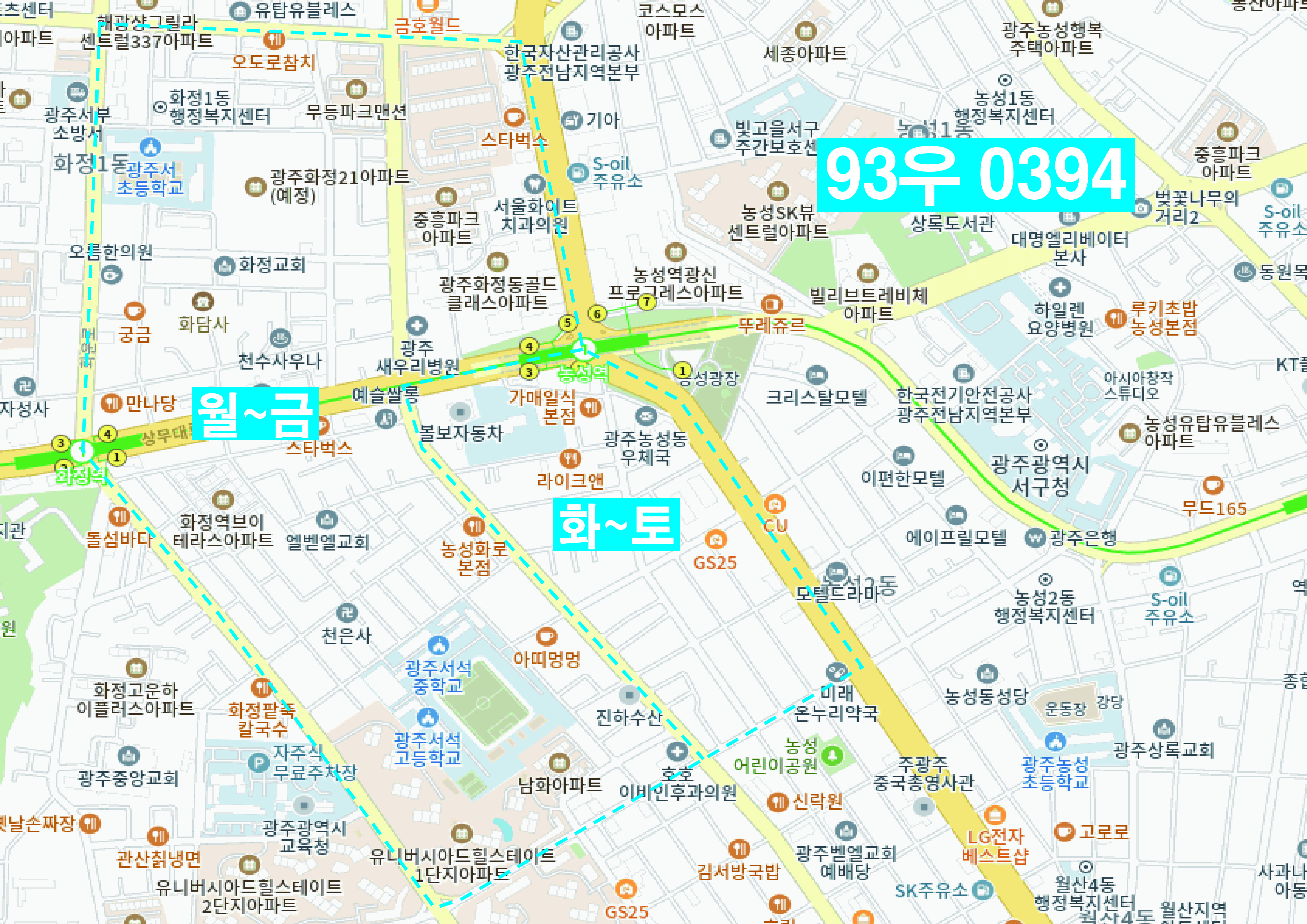 | 13 | 93우0394 | 농성2,화정2,금호 | ||