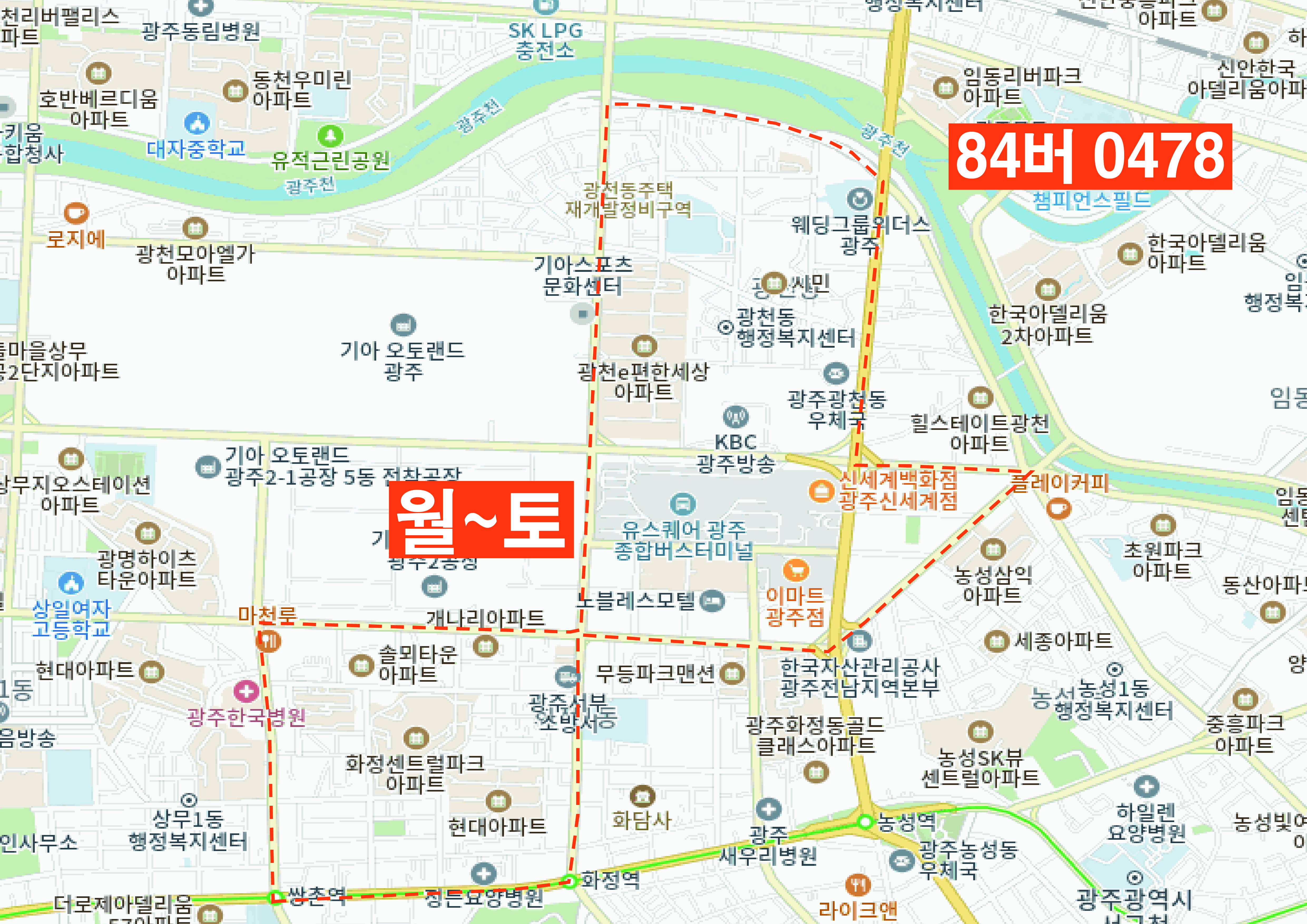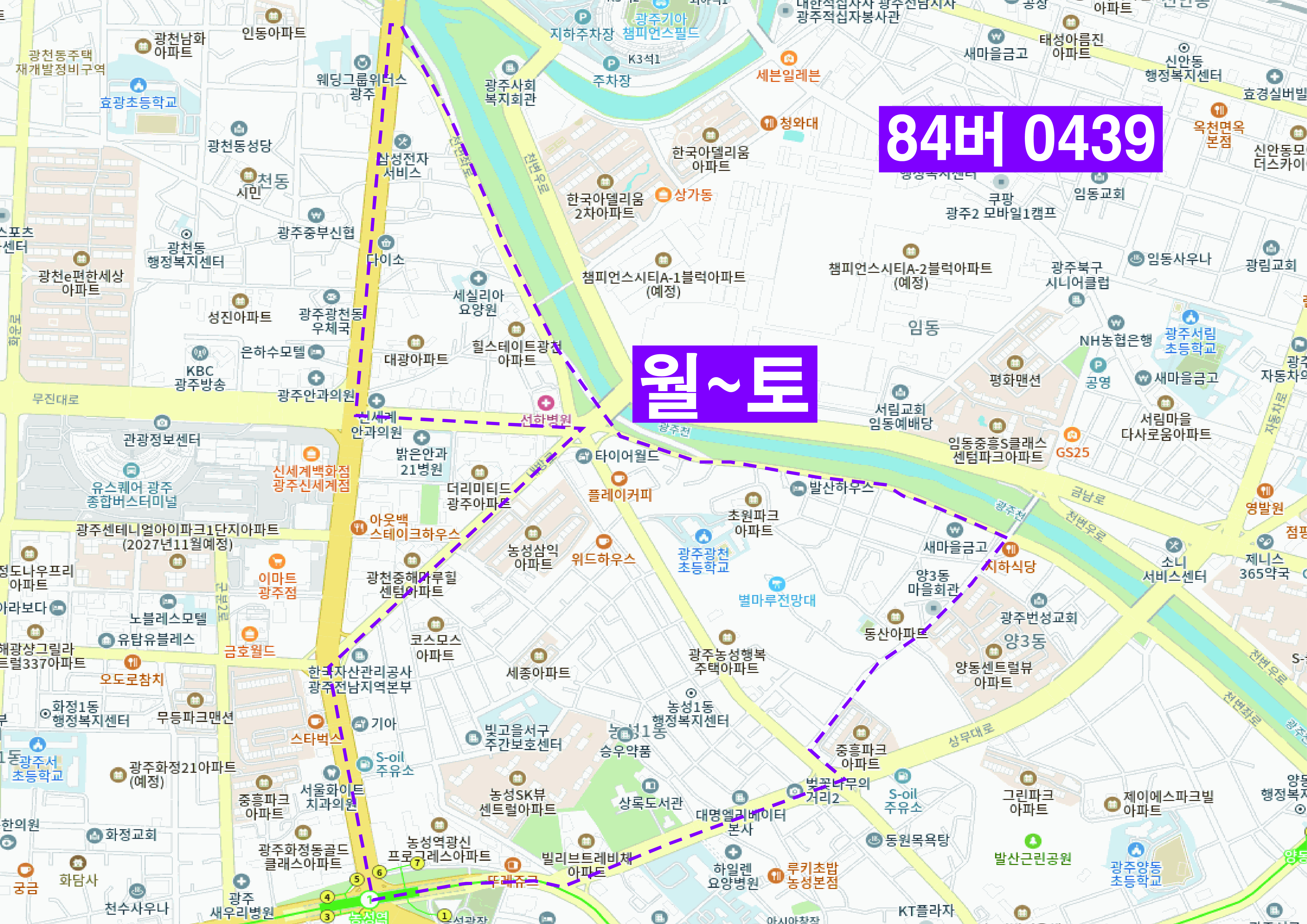 | 3 | 84버0439 | 양3,농성1,치평,광천 | ||