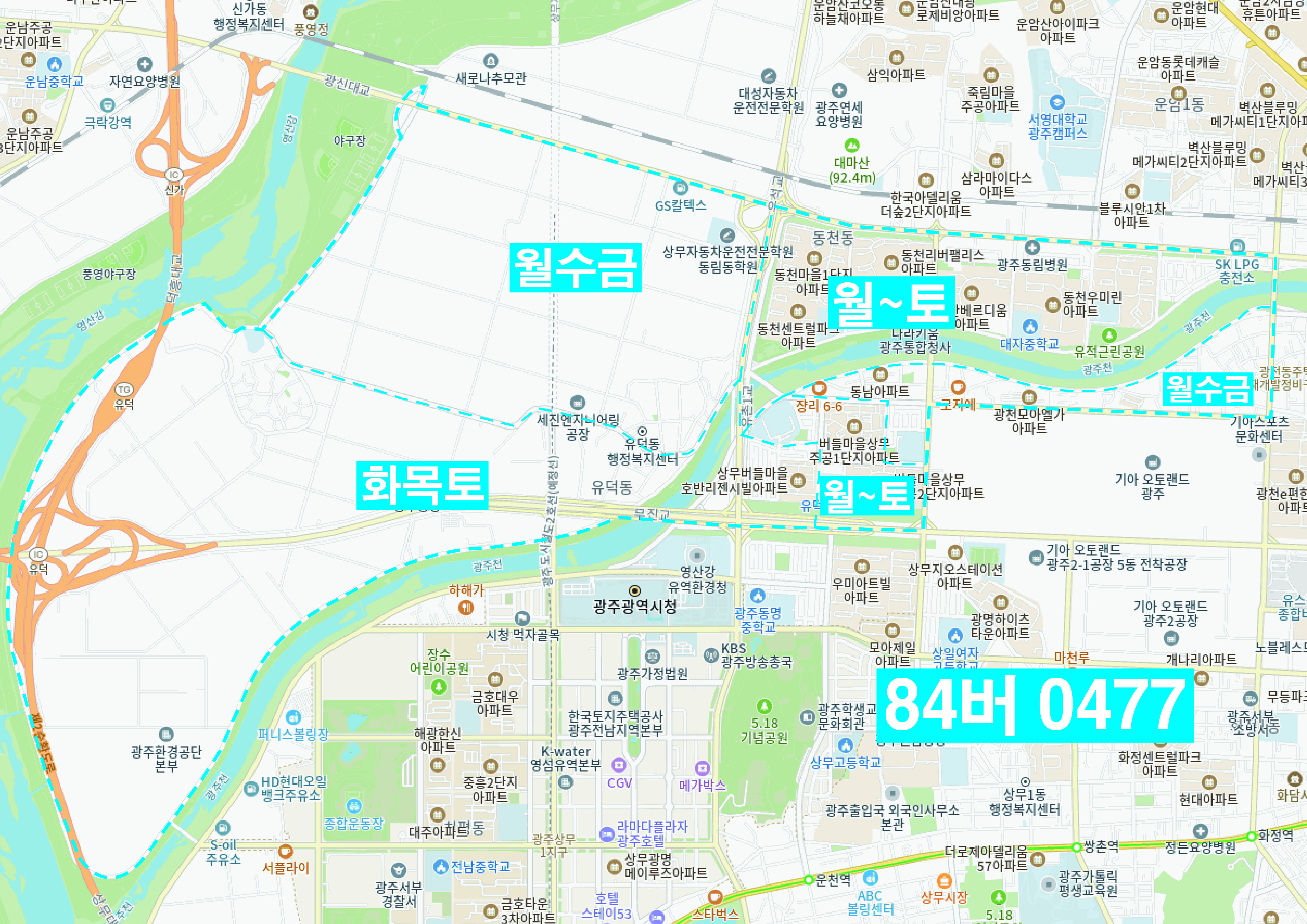 | 5 | 84버0477 | 유덕,동천,광천 | ||